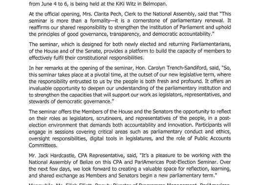 Belmopan City, June 2nd, 2025 — The National Assembly of Belize welcomed bright young minds from three primary schools across the country on Thursday, May 29, 2025, for an educational and engaging visit that brought democracy to life in a fun and meaningful way. The visiting schools included St. Augustine R.C. School from Stann Creek,[...]