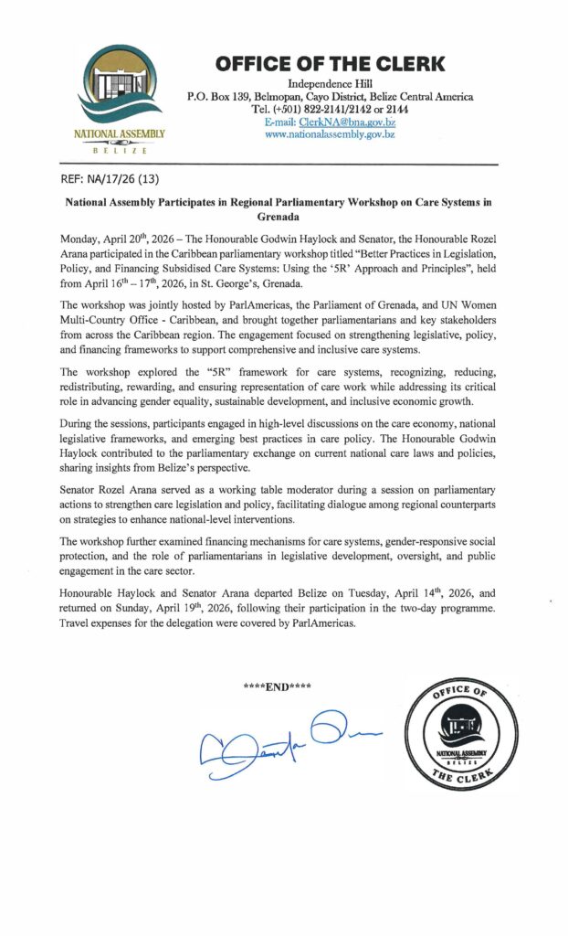 Press Release – National Assembly Participates in Regional Parliamentary Workshop on Care Systems in Grenada