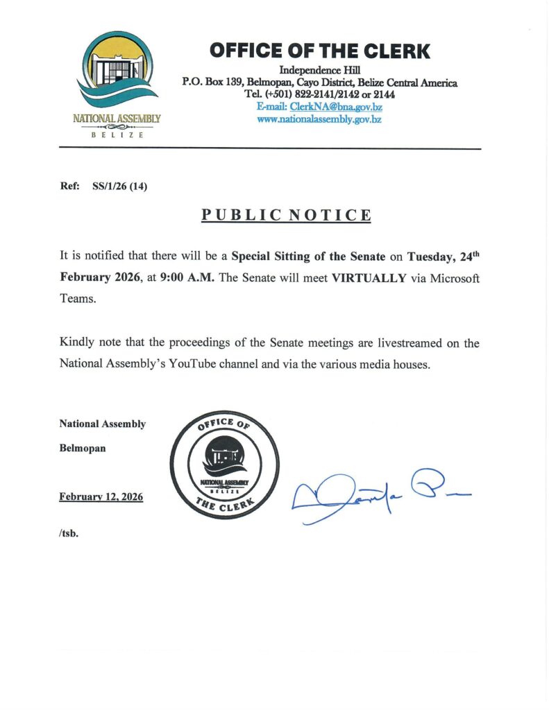 PUBLIC NOTICE: Sitting of the Senate (Virtual)- February 24th, 2026